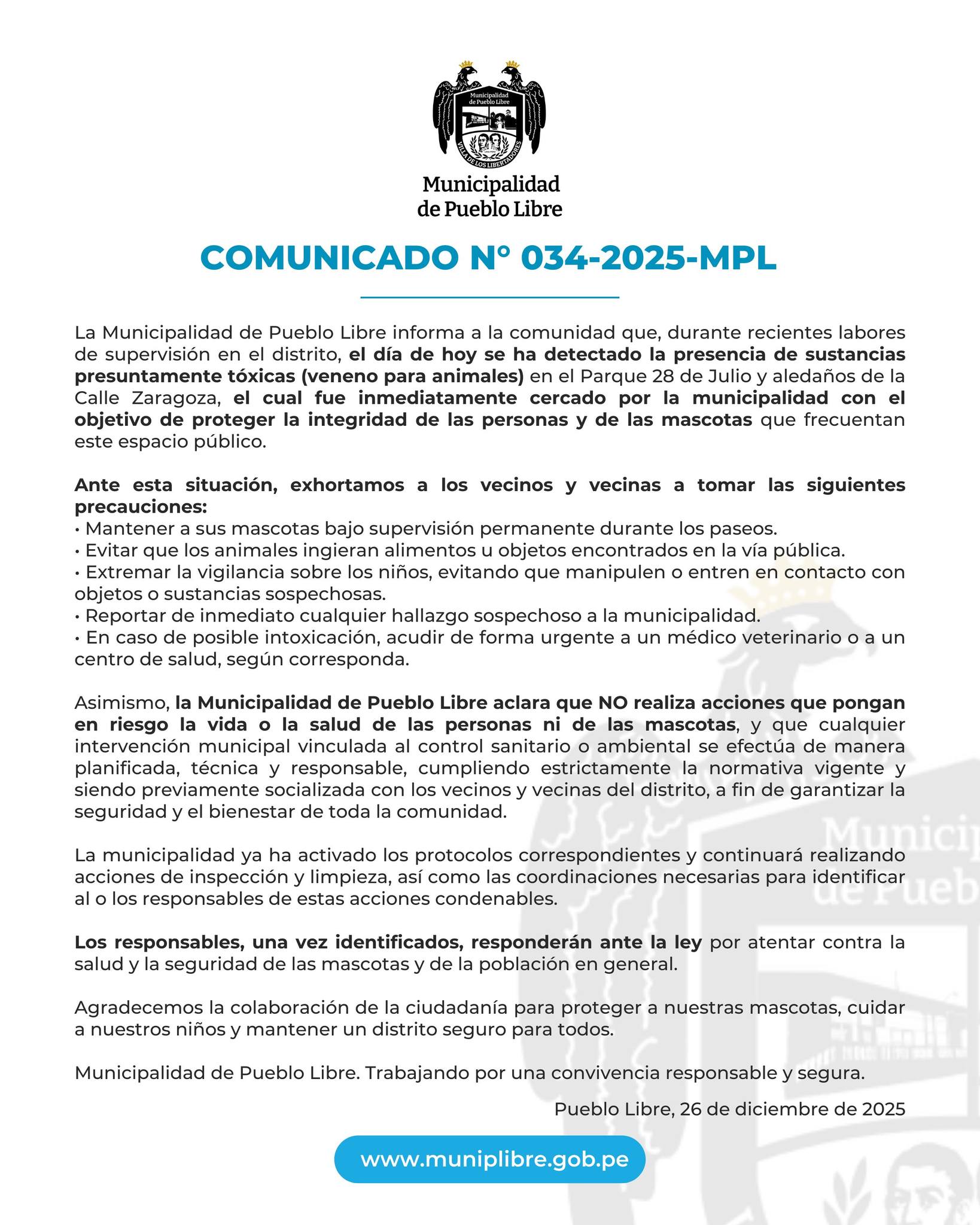 Comunicado N° 034-2025-MPL
